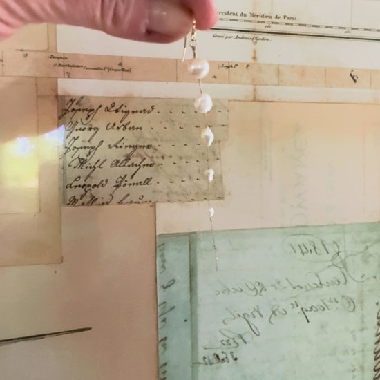 Sculptez la lumière : cinq perles d’eau douce baroques, graduées, glissent le long d’une chaînette en gold-filled 14 K hypoallergénique. Ces boucles d’oreilles pendantes, faites main dans notre atelier, mêlent élégance bohème et brillance raffinée – idéales pour un mariage, une soirée estivale ou pour sublimer un look du quotidien.