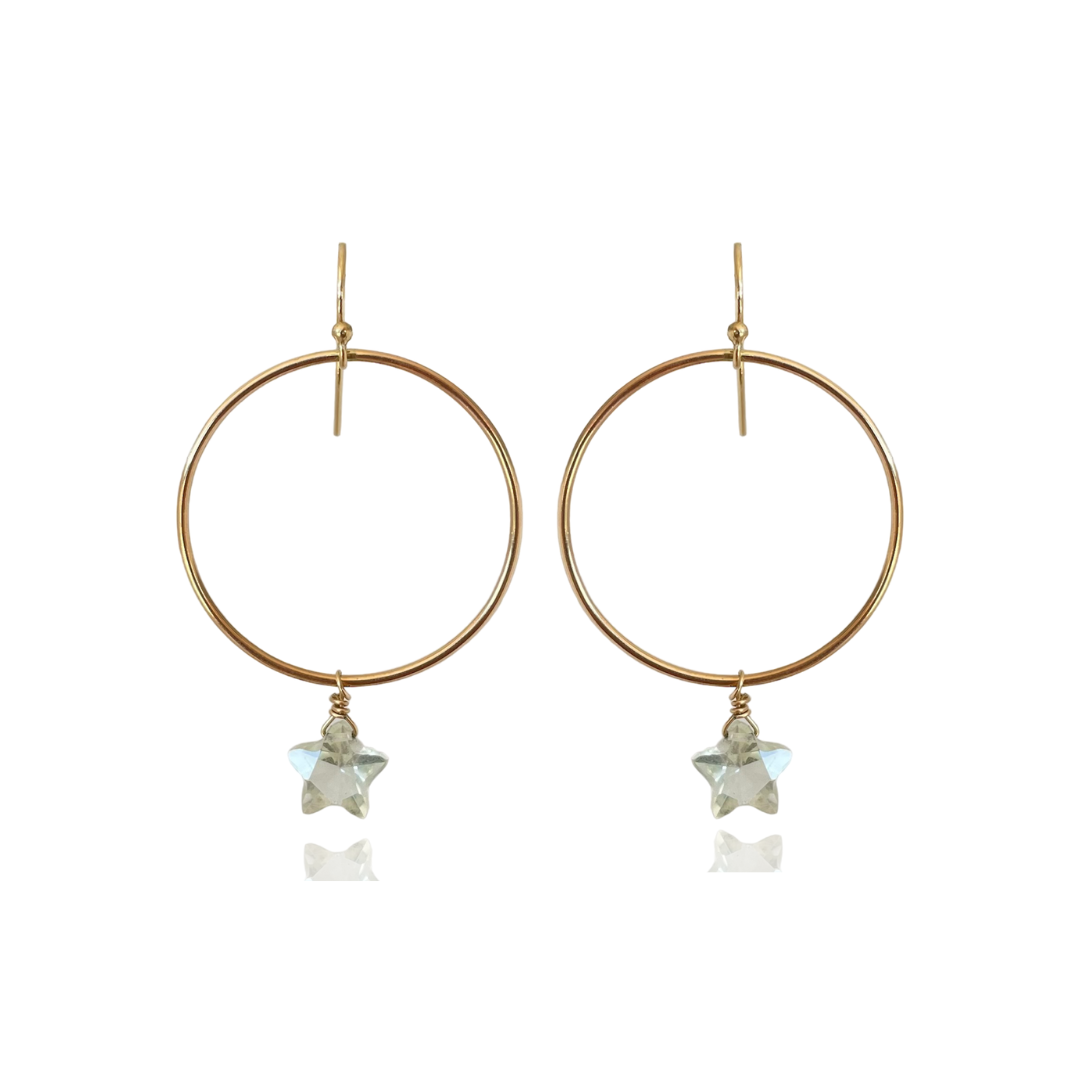 Une étoile d'améthyste verte méticuleusement posée sur une créole en gold-filled un look élégant et facile. Brillez comme une star avec Kili !