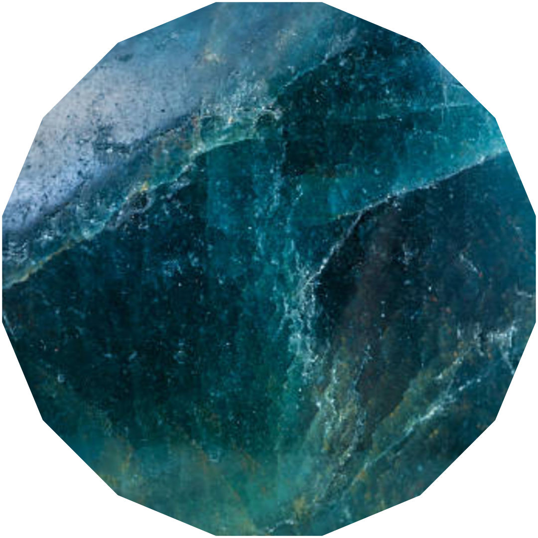 Apatite is often associated with clarity and creative flow—an uplifting gem that invites focus, openness, and a sense of ease. Its name comes from the Greek apatē (“deception”), a nod to how this mineral was long mistaken for others; today, its sea-blue to green hues are prized for their luminous, water-like glow.